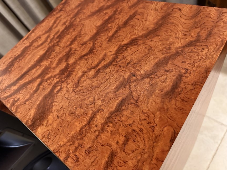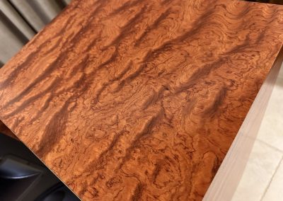 I often start my first couple of coats of lacquer with a gloss and then finish with a satin. When I put the gloss on this veneer I really loved how it looked and decided to simply finish with gloss.