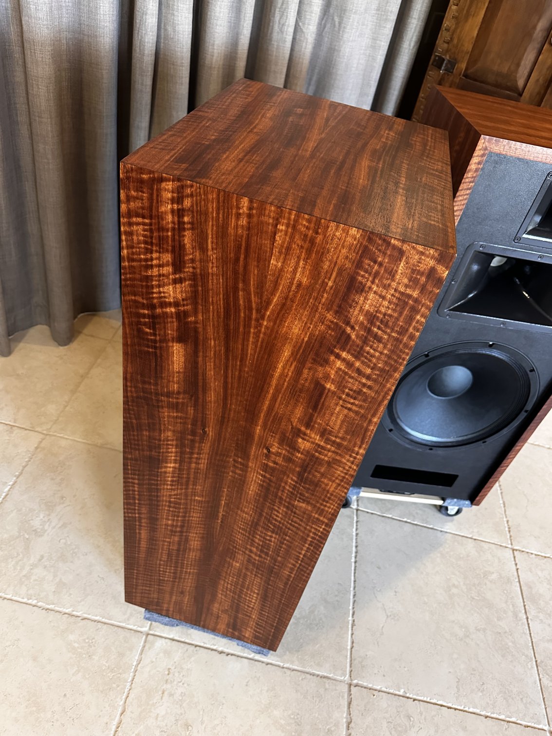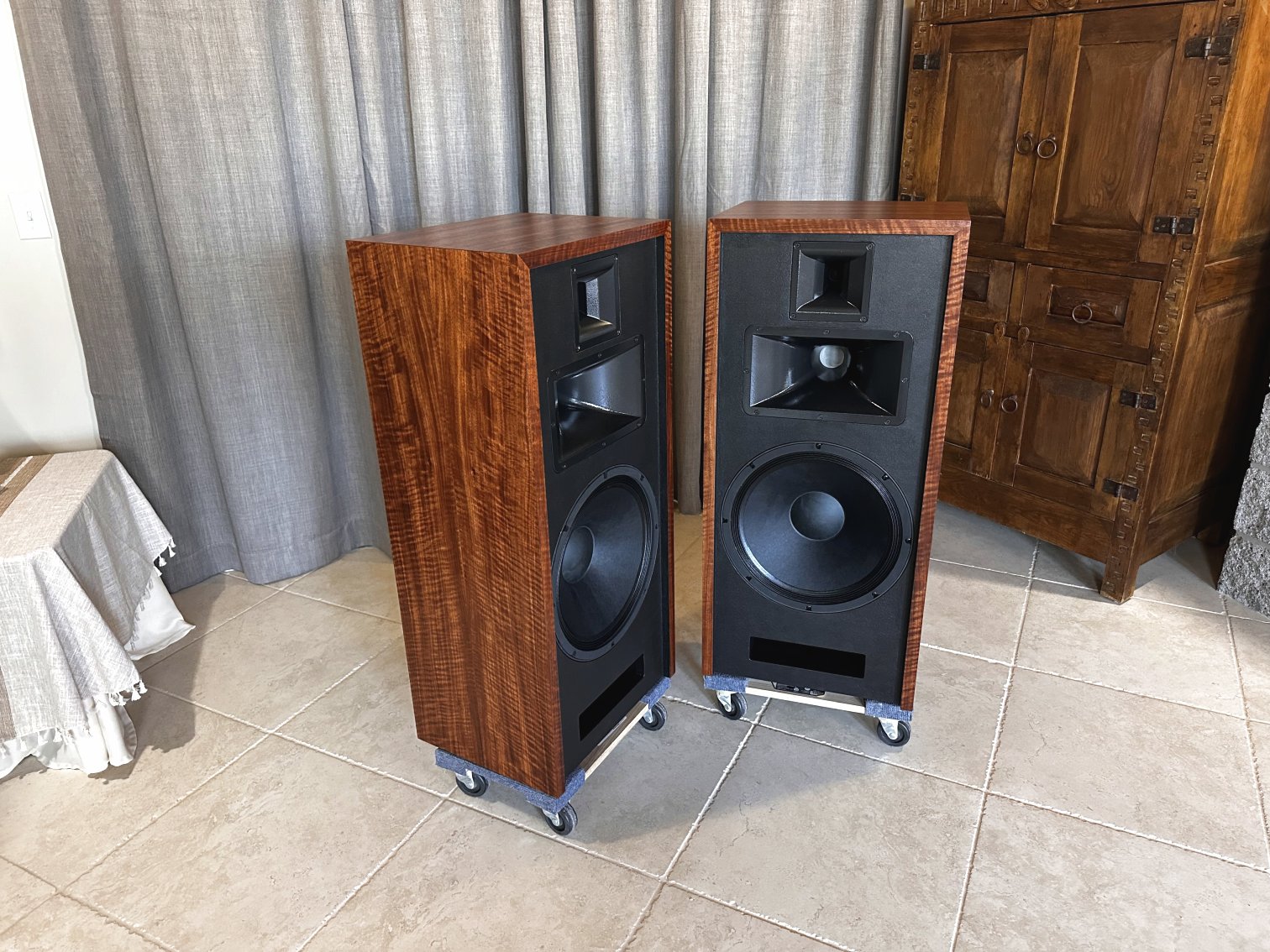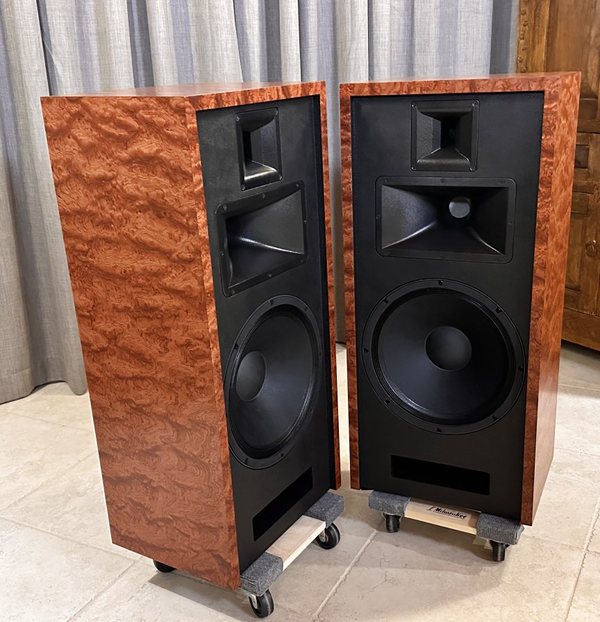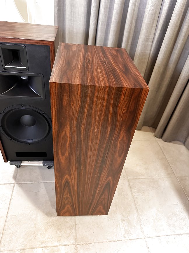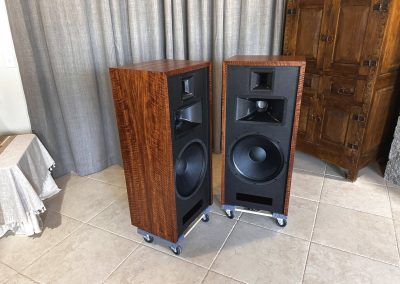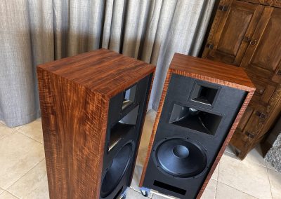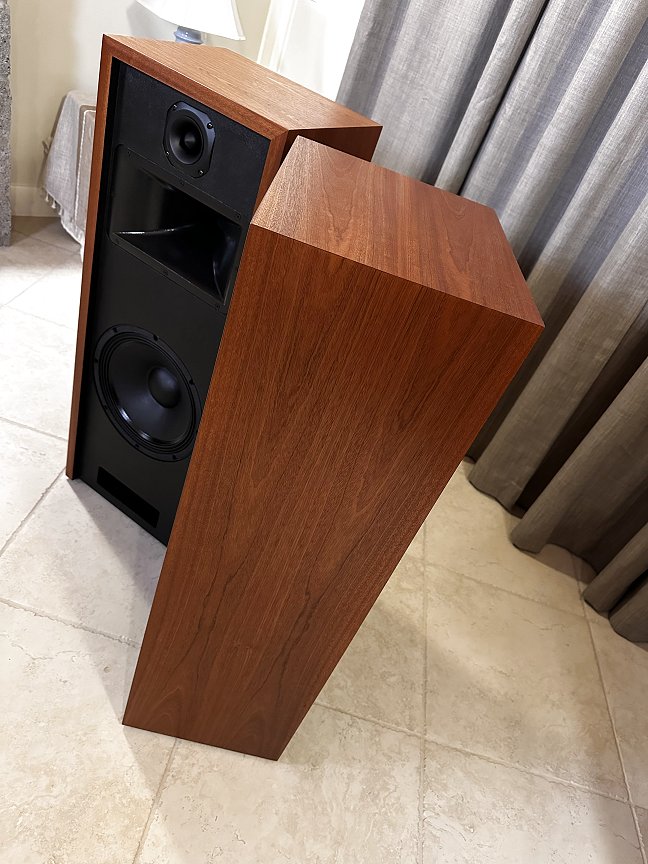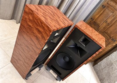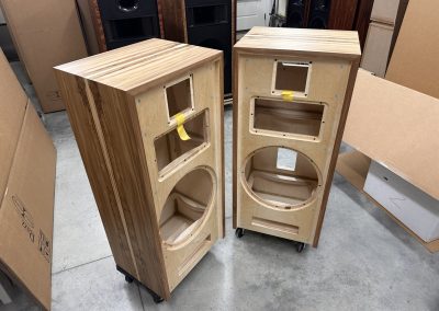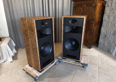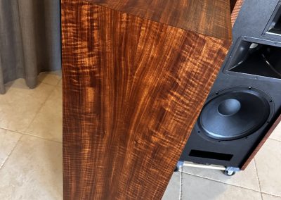This set, veneered in Bubinga is one of three identical pair that were built late 2021, and used at two trade shows in 2022. They are in “like new’ condition, except they are more thoroughly broken in!
