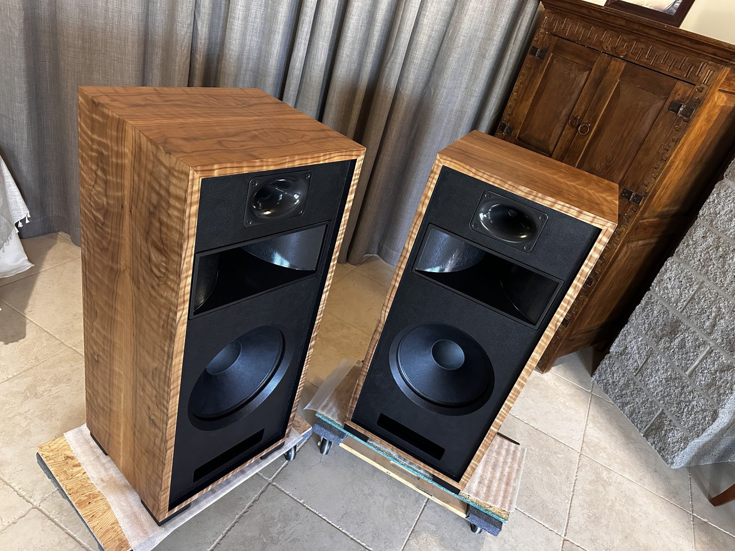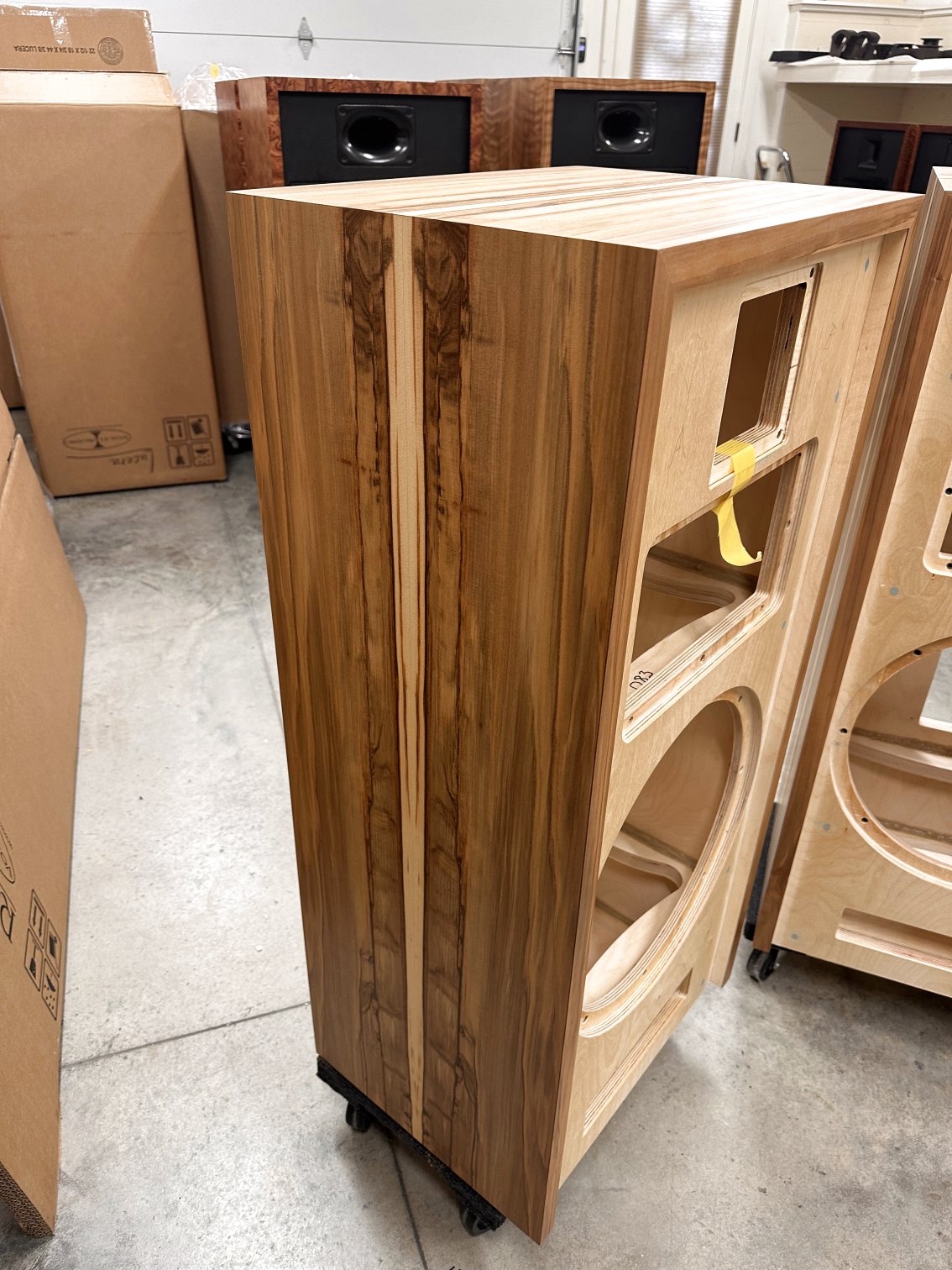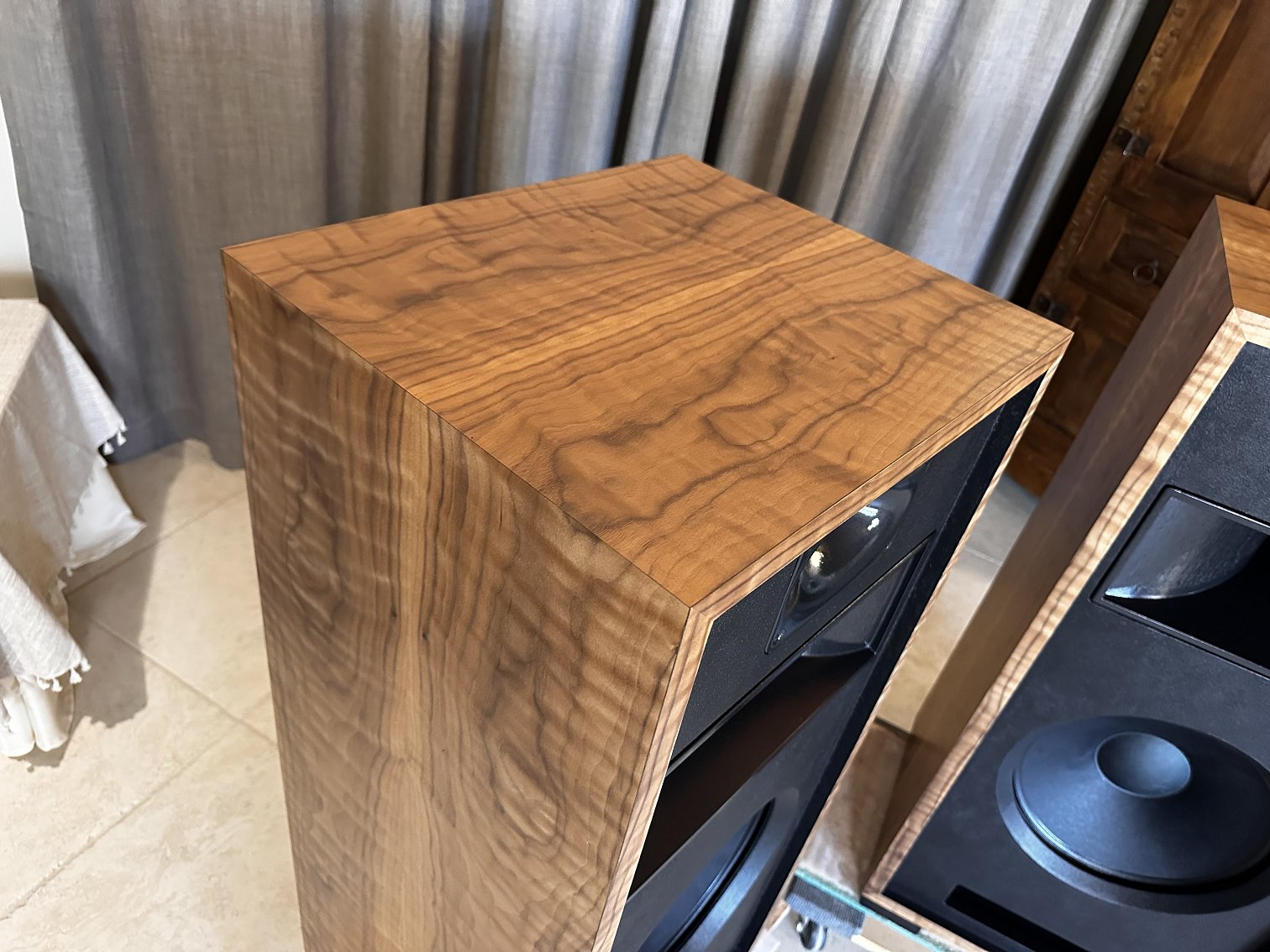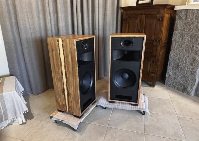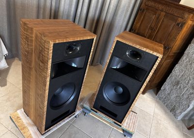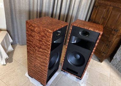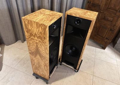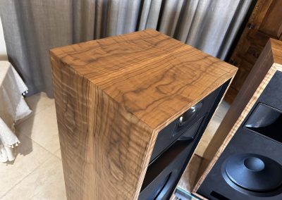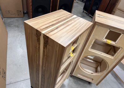 I strive to keep speakers in stock with a good variety of wood veneer finishes to choose from. As soon as new speakers are finished, I photograph them and put the photos up here on this webpage. You are seeing photos of the actual speakers you will receive when you place an order. If you are interested in something different than you see here, please send me an email at voltiaudio@gmail.com and we can discuss it.