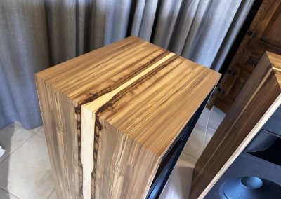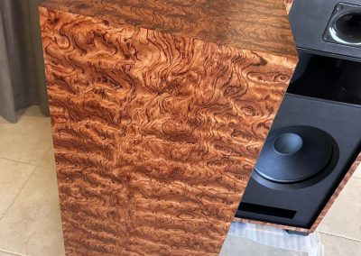 Up for sale we have a pair of Volti Audio Alura speakers built in 2019 and finished in one of the most beautiful veneers I’ve ever seen – a very special Bosse Cedar with a 3D grain effect that I’ve never seen on a veneer before.