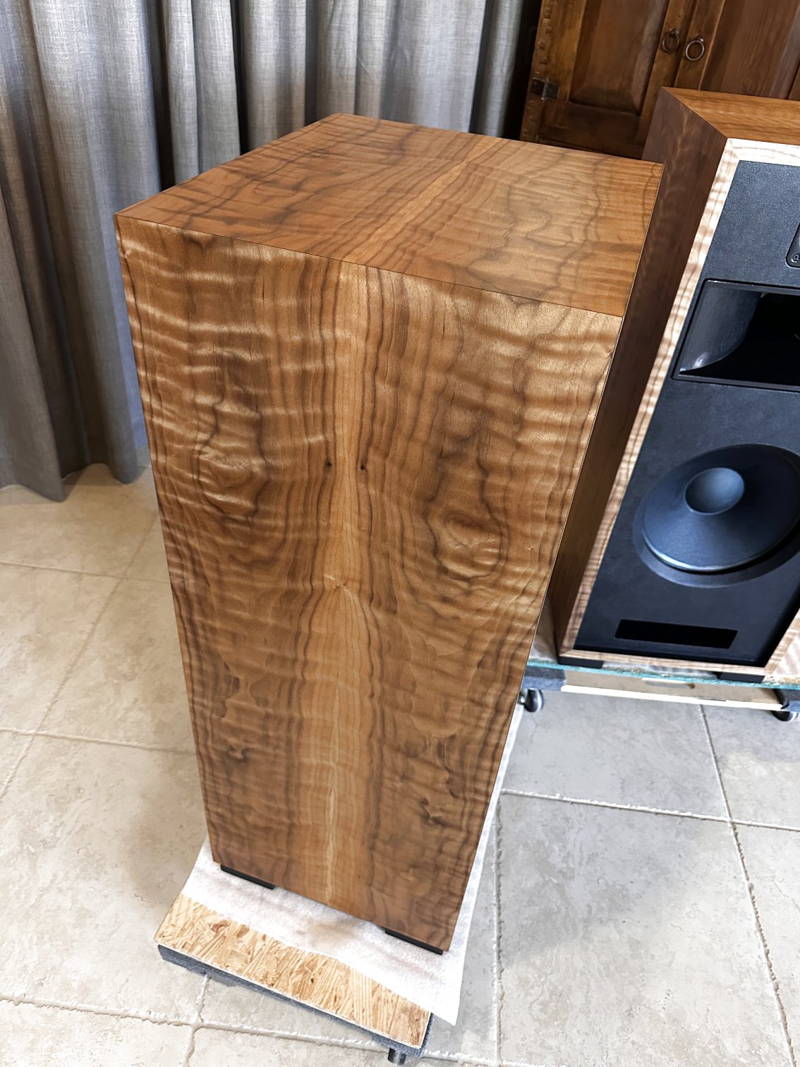 Sorry you missed out on this beautiful pair of Cherry Razz speakers, but I have lots of great Cherry veneer in stock and I’d be happy to build a pair for you.
